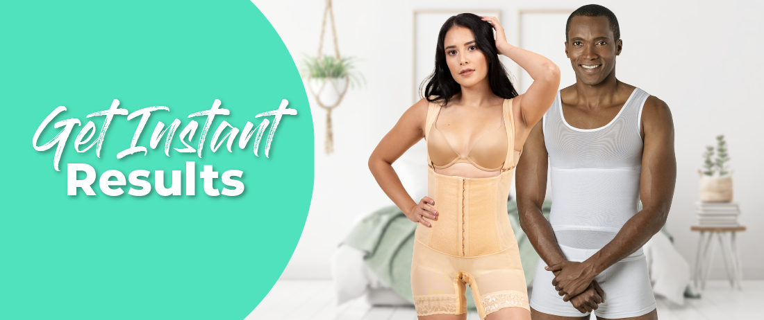 The body magic distributes or positions the fatty tissue we accumulate to other areas of the body, we call this lipotransportation, it is an instant outside-in effect that gives each person the appearance of a new and reshaped image. The garment provides abdominal pressure providinng support to the body while reducing at least two sizes in less then 10 minutes for each person on average.